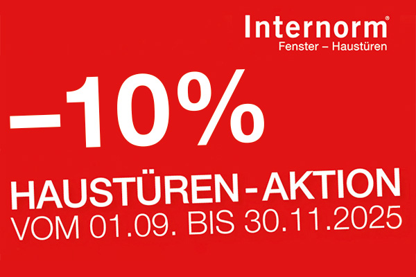 Profitieren Sie bei uns von 10 % Rabatt auf alle Haustüren von Internorm. Rufen Sie an 031 932 26 14 und lassen Sie sich beraten!